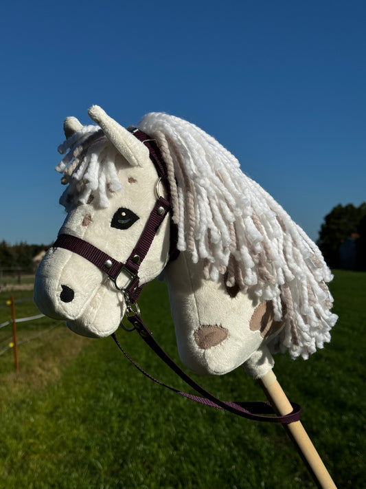 Hobby Horse A4 with detachable stick. Andalusian with very long mane.