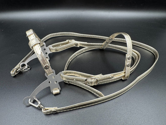 Hackamore shank bridle made of eco-leather for hobby horse A3. Platinum.