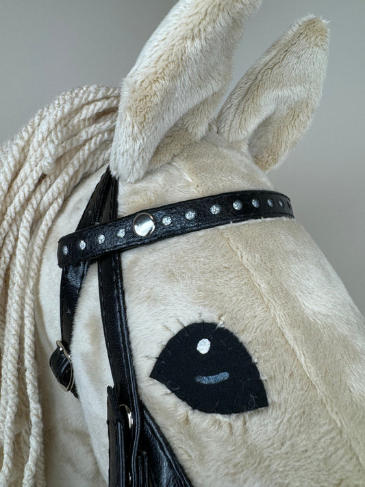Eco-leather bridle for hobby horse A3 with diamond browband. Black.