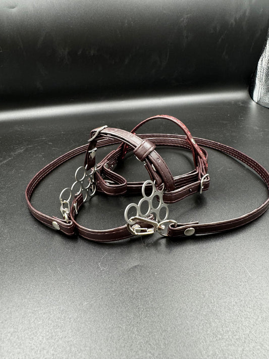 Eco-leather bridle for hobby horse A3 hackamore flower with diamond browband. Brown.